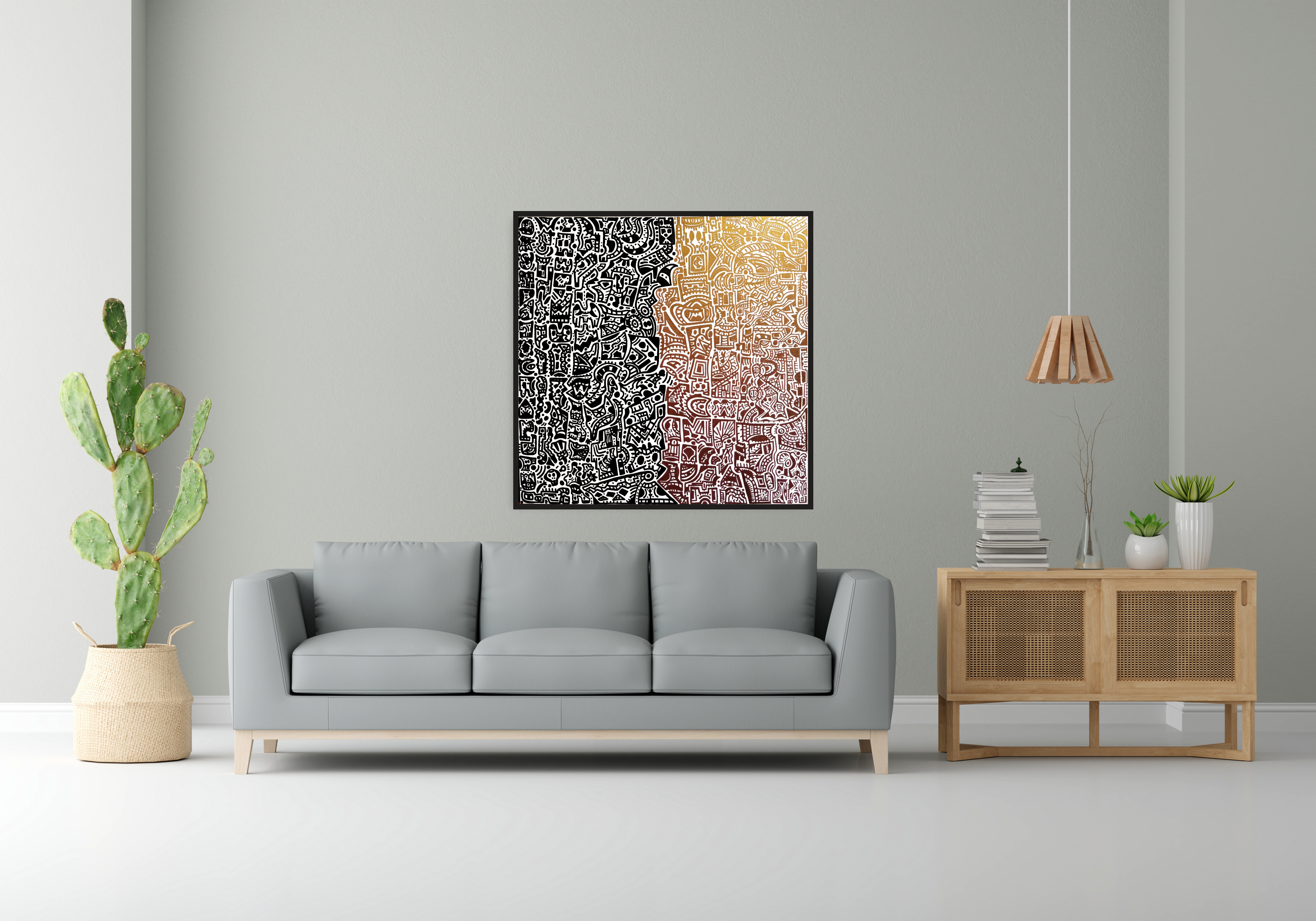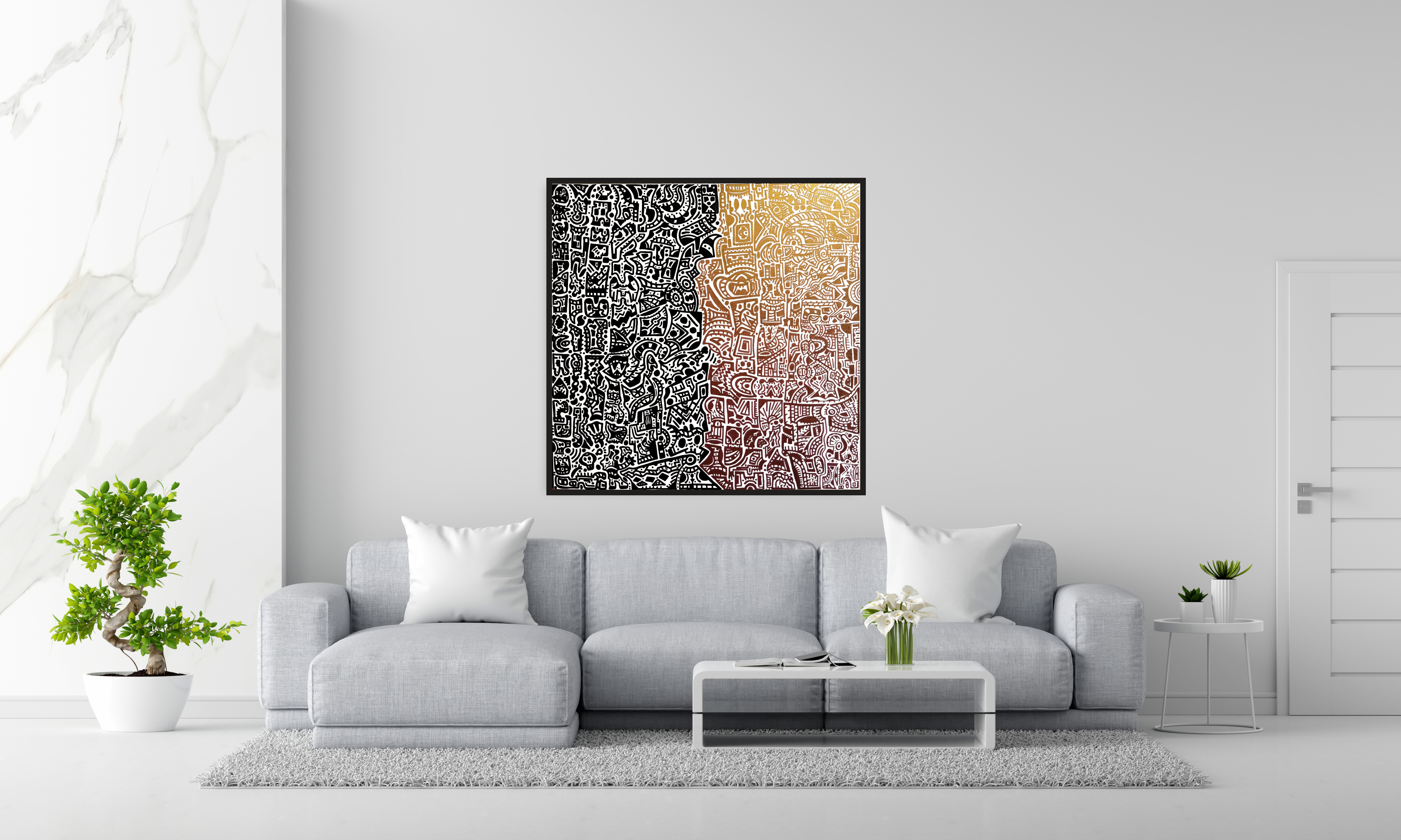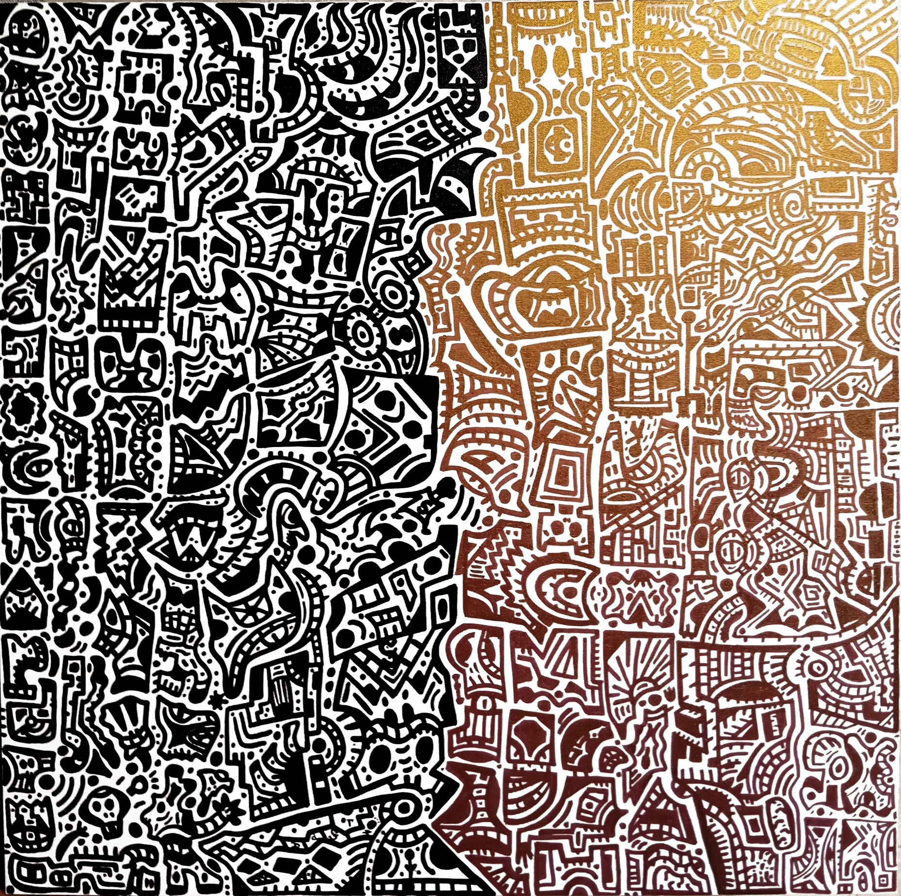 "Письменность Ромшаха"Холст 110×110 ,краска 214 (черный + дуохром)