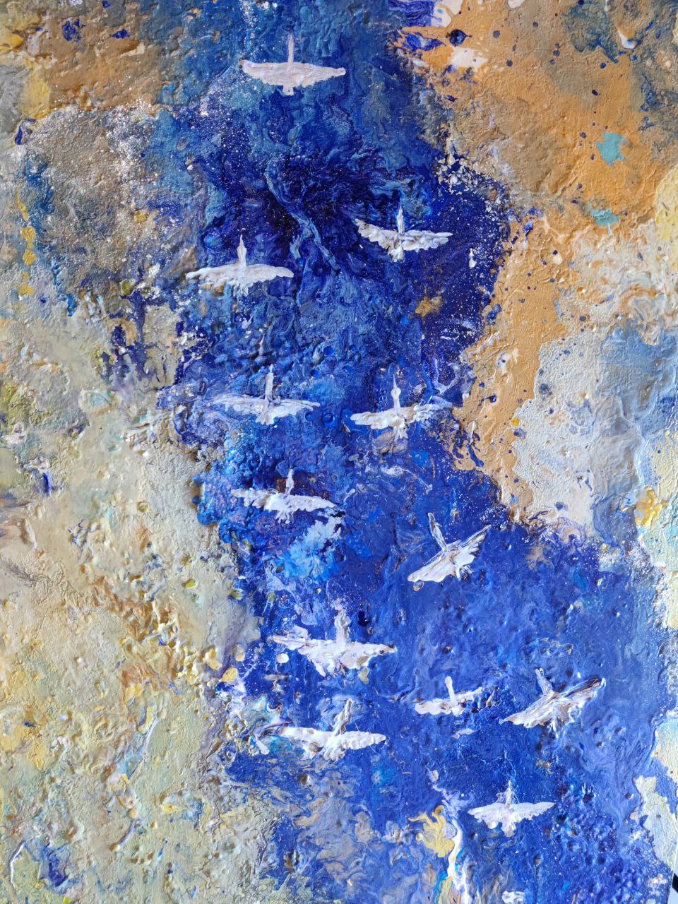 Журавли Ксения Кузнецова Художник 1990 г. 2023 г. 50x70 см Категория: Живопись Стиль: Модернизм Техника: Акрил Материал: Оргалит 0 11 58 000 В корзину Описание работы Журавли летящие над землей